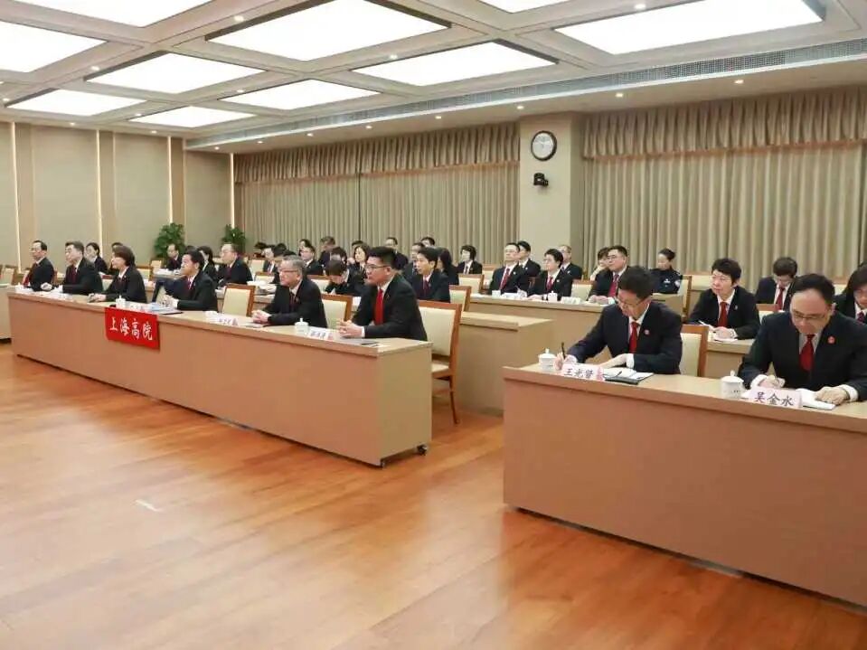 最高法党组副书记、分管日常工作的副院长邓修明主持会议。中央纪委国家监委驻最高法纪检监察组组长、最高法党组成员张荣顺,党组成员、副院长杨临萍、茅仲华、沈亮、李勇,党组成员、政治部主任孙镇平,审判委员会专职委员刘贵祥、王淑梅出席会议。最高法机关各部门、各巡回法庭、知识产权法庭、直属单位班子成员和全体干警在主会场参会。部分全国人大代表、全国政协委员,各高院班子成员、内设机构负责同志在分会场参会。