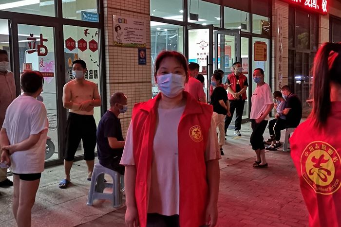 当发现检测点上的居民越聚越多,曾涛跑回包保楼栋,提醒居民不聚集、错峰检测;当检测工作有序推进,他又返回通知大家赶紧前往。整个晚上,来来回回,他不知跑了多少趟……