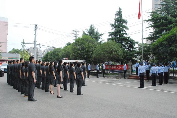 胸怀千秋伟业,恰是百年风华。上午7点,三名护旗手迈着铿镪有力的步伐走向升旗台,在雄壮嘹亮的国歌声中,鲜艳的五星红旗冉冉升起。干警代表列队整齐,精神饱满,用深情的注目礼表达对党、对祖国和对人民的无限忠诚和热爱,寄托对党和国家美好明天的由衷祝福。