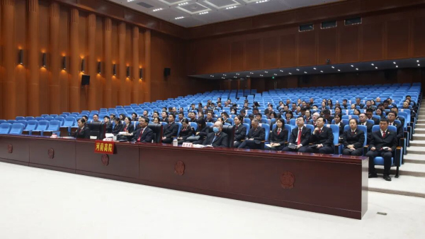 地方各级法院干警在分会场参会。